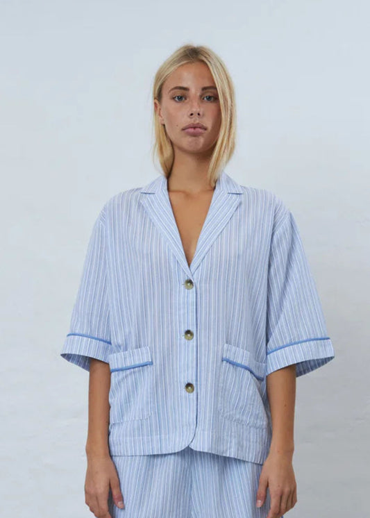 Short sleeved pyjamas shirt-White/Blue Strips