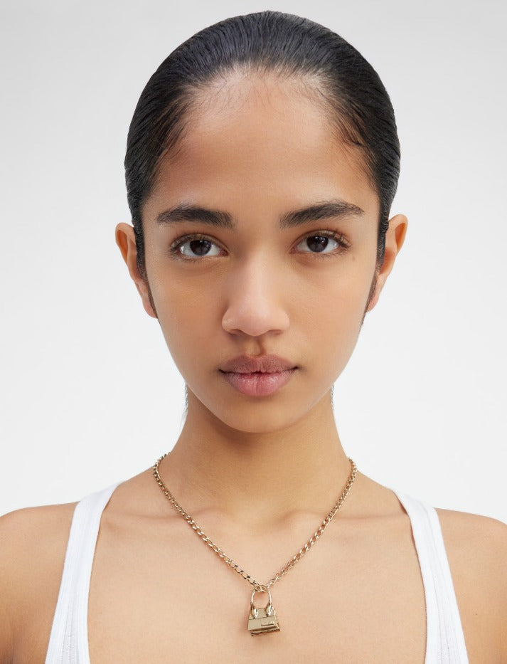 Chain necklace with Chiquito pendant- Pale gold-plated brass