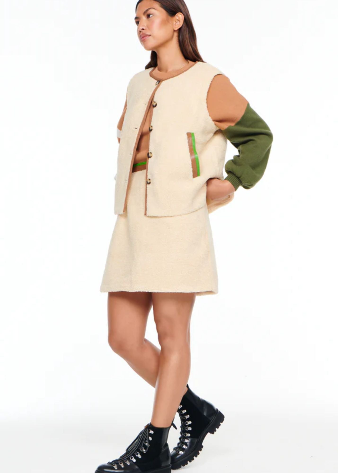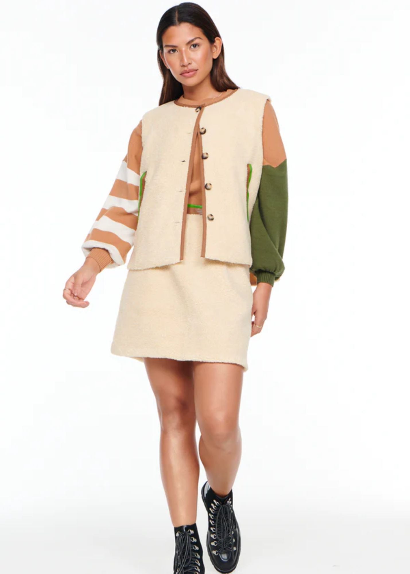 Super soft, fluffy, stylish and fitting for the upcoming season. Featuring detailed piping to the top, zip fastening and a perfect feel. Looks fab with or without tights, a shirt or the matching waistcoat and boots.