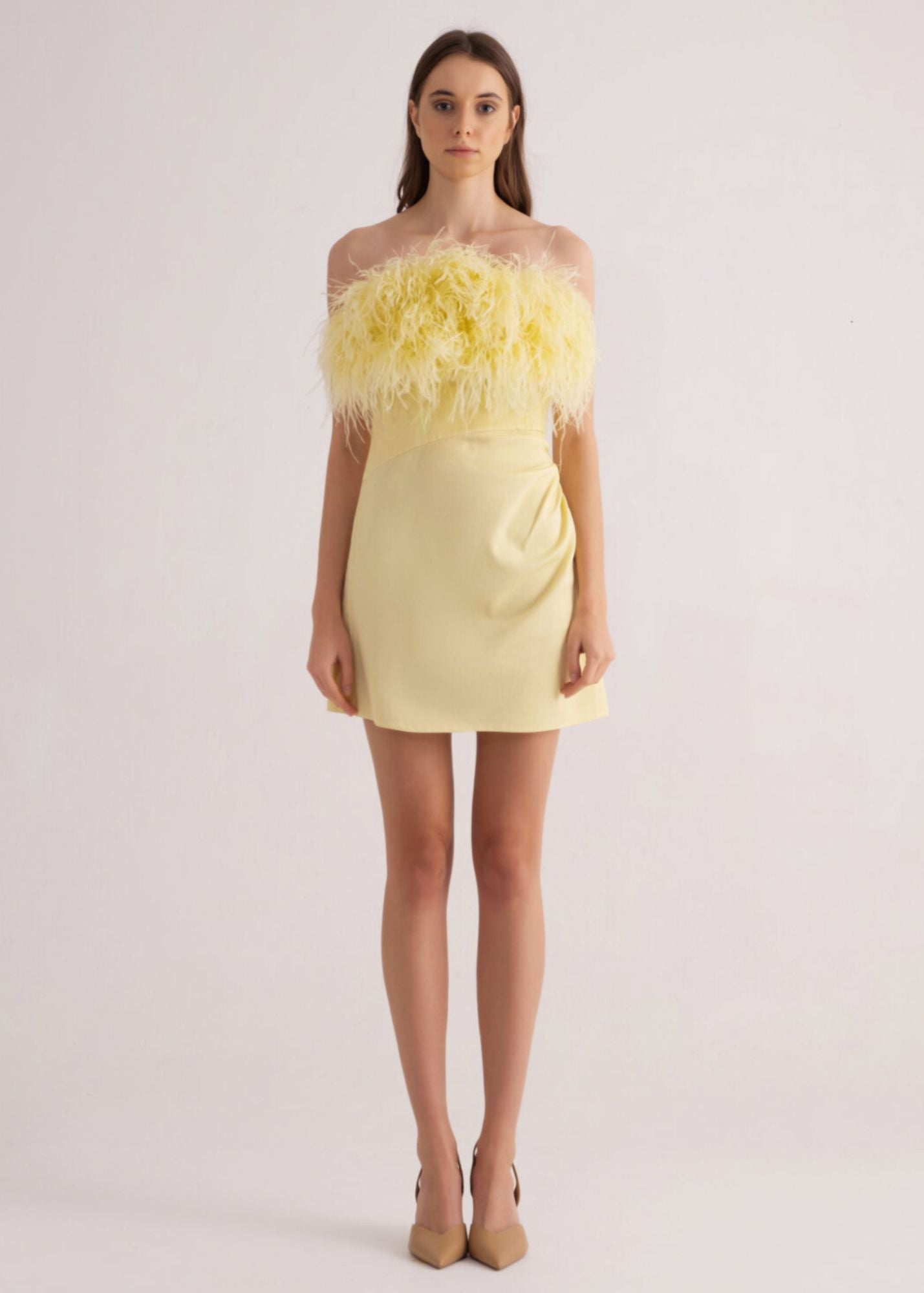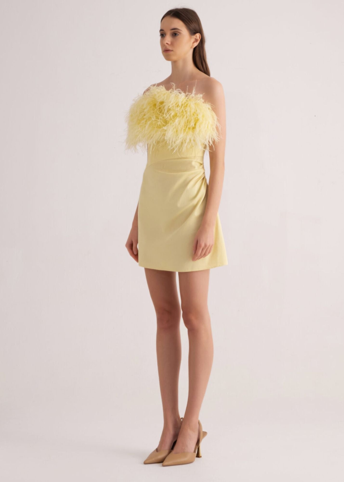 Mini Dress With Trimmed Feather